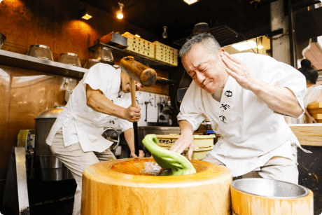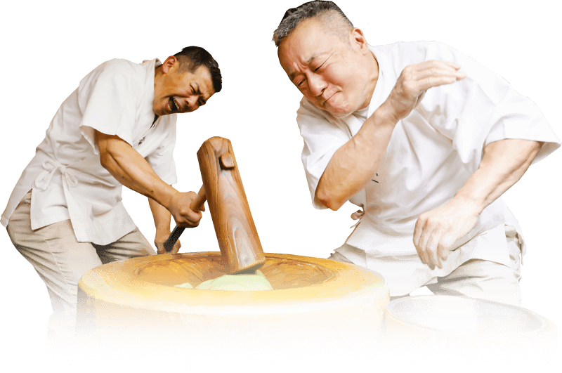 そうすることによって、なめらかでよく伸びて、でもコシのあるおいしいお餅ができます。決してショー的なもの、パフォーマンスとしてやっているわけではなく、おいしいお餅を作るために必要な作業なのです。