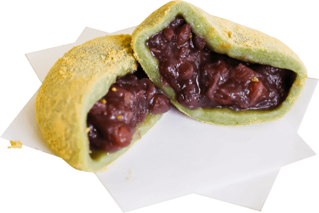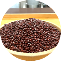 よもぎ餅の材料(もち米、小豆、きな粉、よもぎ)は厳選されたものを